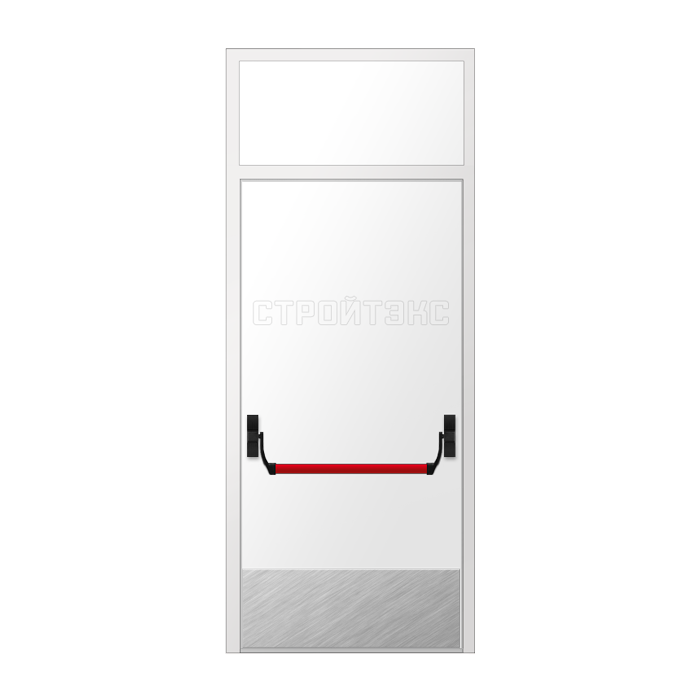 Дверь противопожарная металлическая EIS60 Антипаника с фрамугой и накладкой из нержавеющей стали