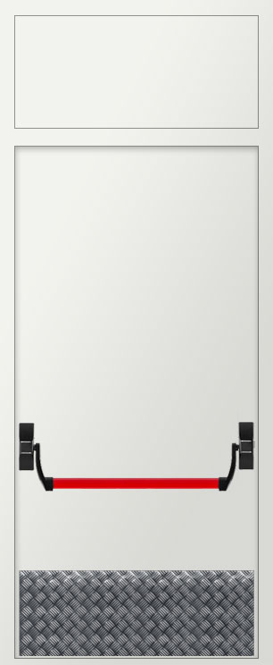 Дверь противопожарная металлическая EIS60 со скрытыми петлями, фрамугой, Антипаникой и накладкой из алюминия