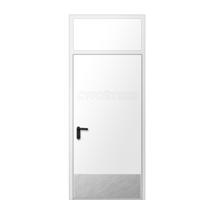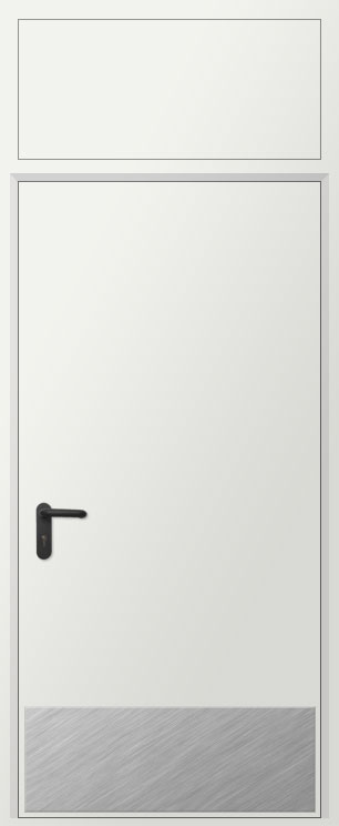 Дверь противопожарная металлическая EIS60 со скрытыми петлями, фрамугой и накладкой из нержавеющей стали