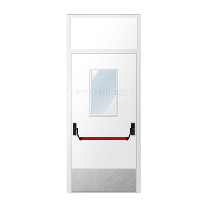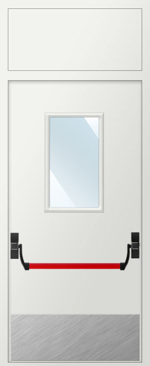 Дверь противопожарная металлическая остекленная EIS60 300х600 с фрамугой, антипаникой и накладкой из нержавеющей стали