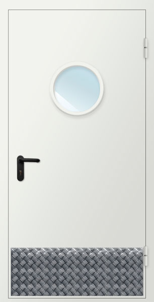 Дверь однопольная металлическая противопожарная с остеклением изготавливается по индивидуальным размерам на нашем собственном производстве. Полотно и рама двери выполнена из металла 1,2 или 1,4 мм. Цвет двери может быть абсолютно любой по шкале RAL, используем порошковое напыление. Качественная упаковка обеспечит доставку в другой регион без рисков. Срок изготовления в среднем занимает 7 дней.