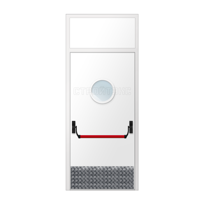 Дверь противопожарная металлическая остекленная EIS60 D300 с фрамугой, антипаникой и накладкой из алюминия
