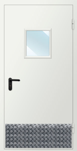 Дверь техническая ДМ-1 с остеклением 300х400мм и накладкой из алюминия