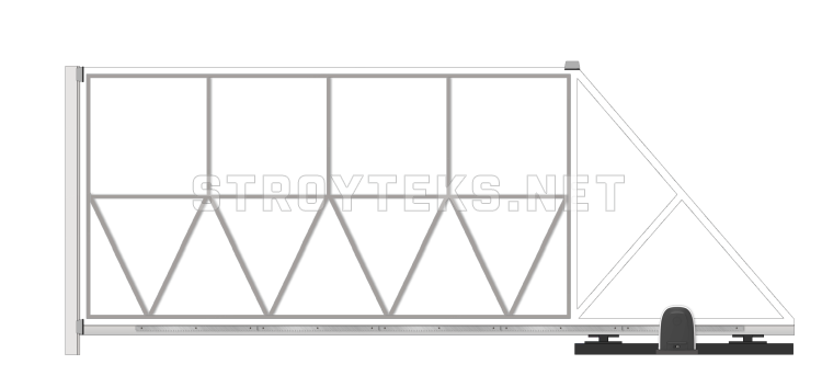 • Строение состоит из створки, которая перемещается на роликовых приспособлениях, укрепленных в забетонированном швеллере (П-образная металлическая форма).