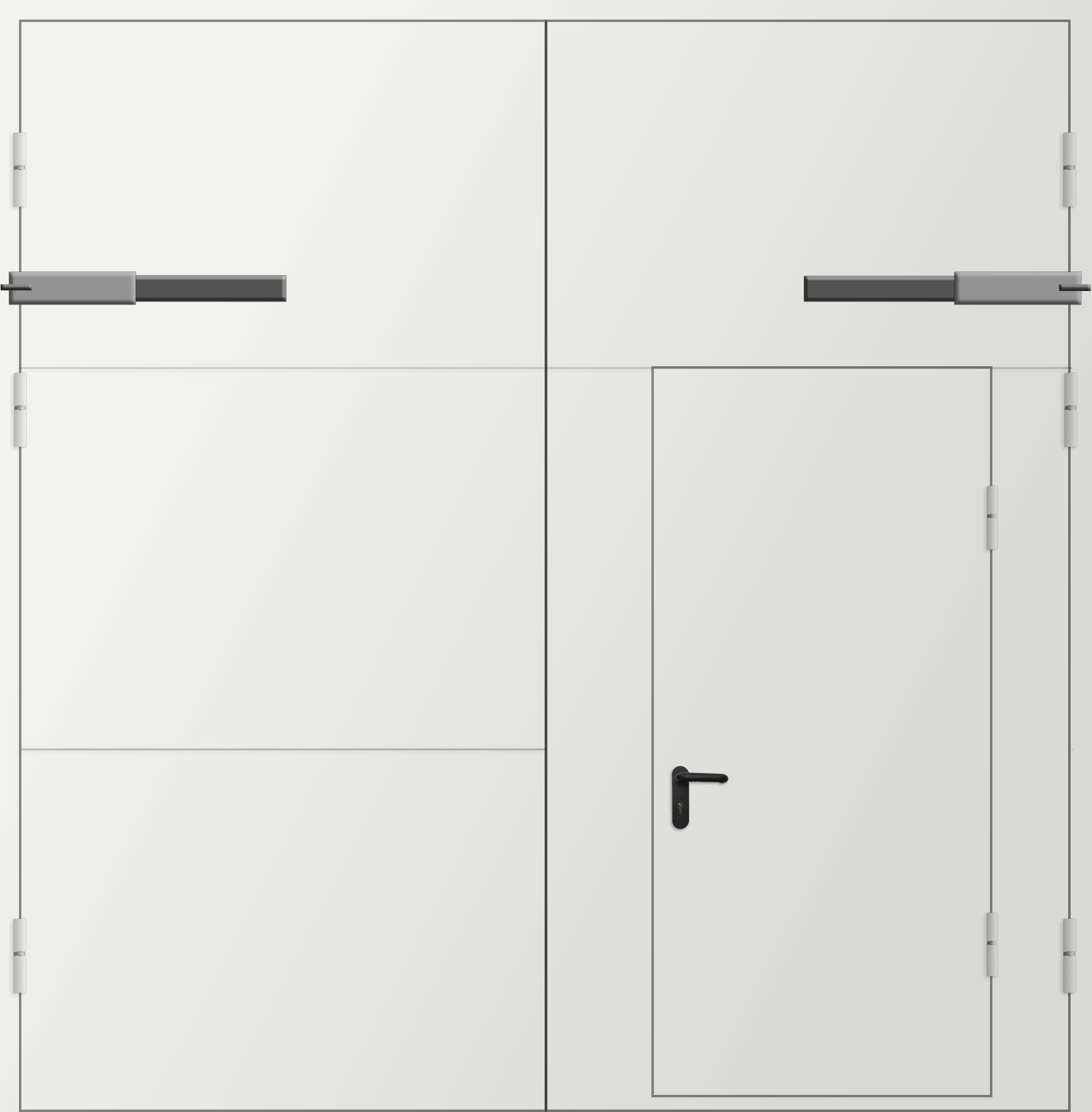 Калитка упрощает экстренное реагирование в случае возгорания, позволяет быстрее вывести людей из помещения. Ее изготавливают из того же материала, что и остальное полотно с аналогичным классом огнестойкости. Распашной тип используют при установке на наружных стенах зданий, для устройства внутренних перегородок в отсеках с крупногабаритным промышленным оборудованием.