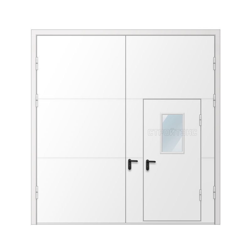 Ворота металлические противопожарные EI 60 с калиткой и остеклением